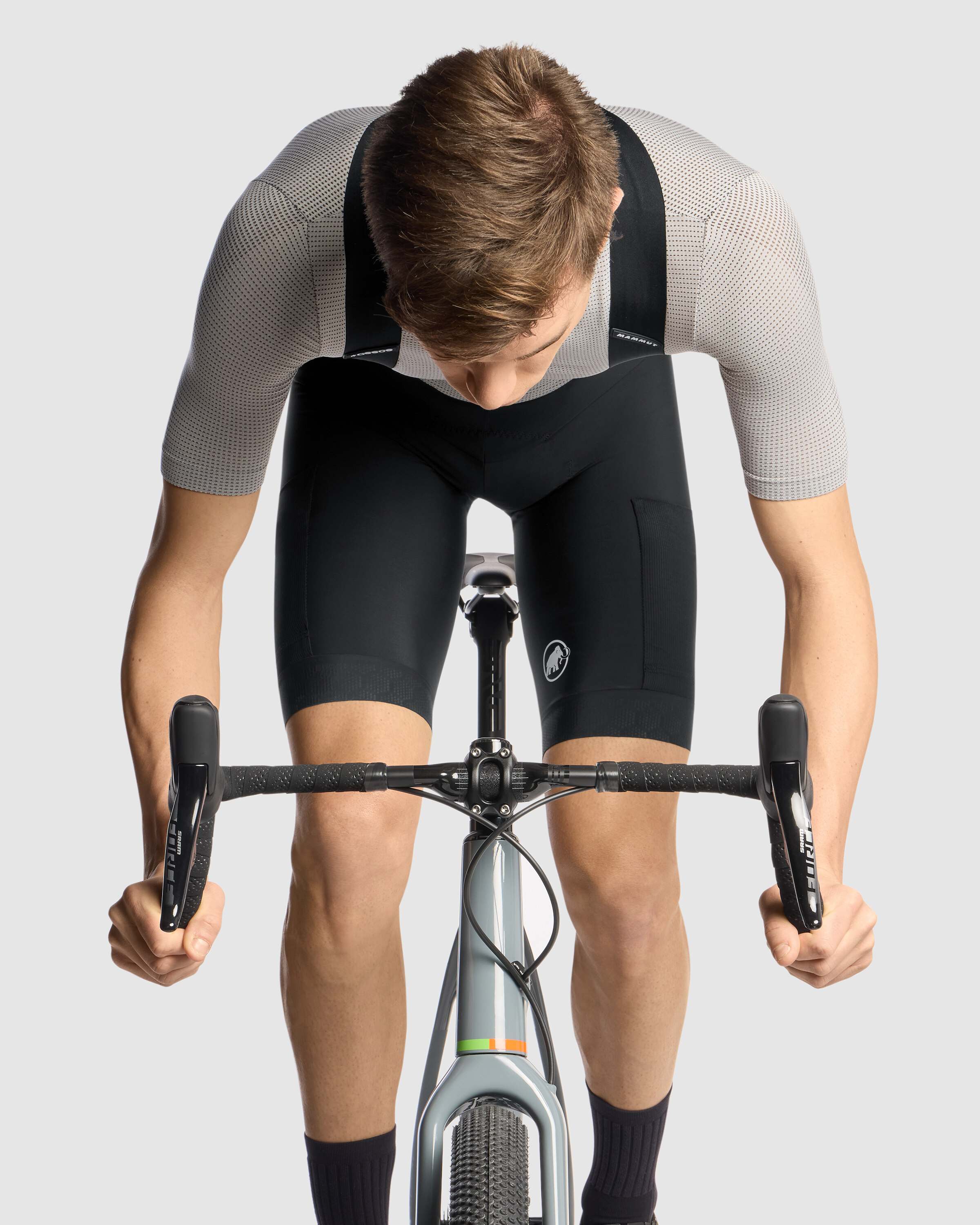 The ASSOS x Mammut TACTICA Bib Shorts blend performance and durability for competition and touring alike, refined with integrated storage, a compressive textile, and a simplified, weigh-saving construction.