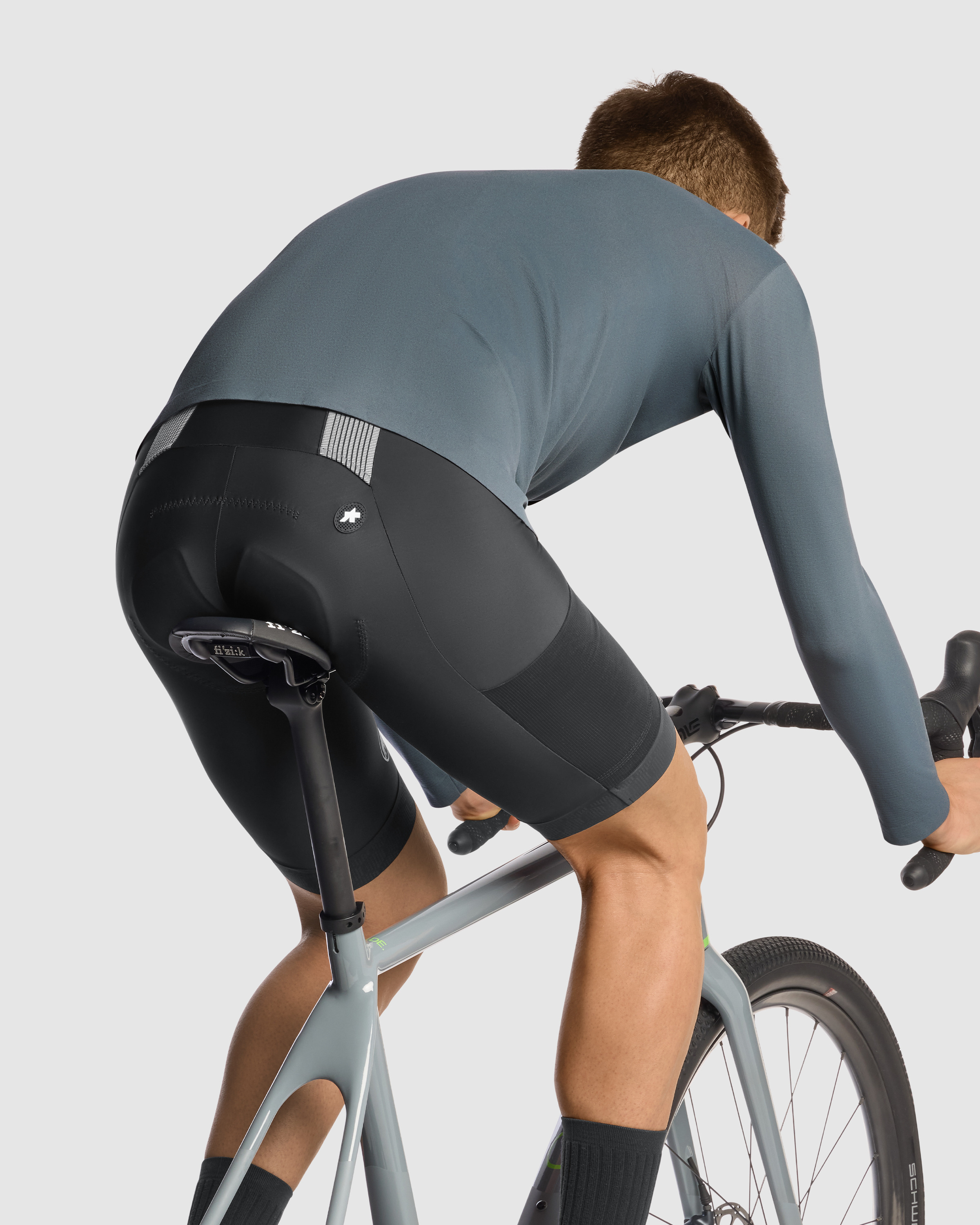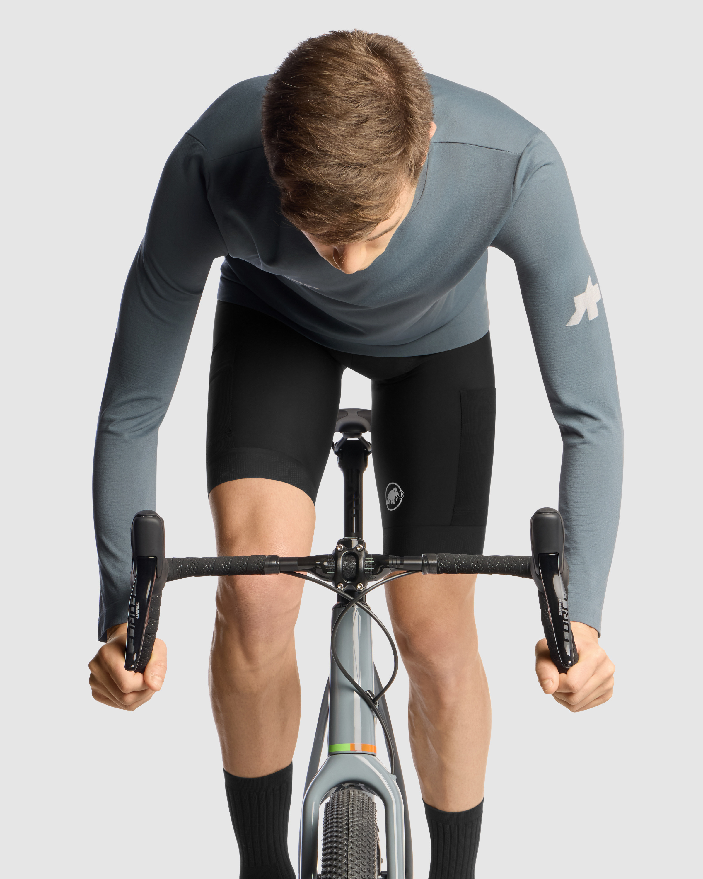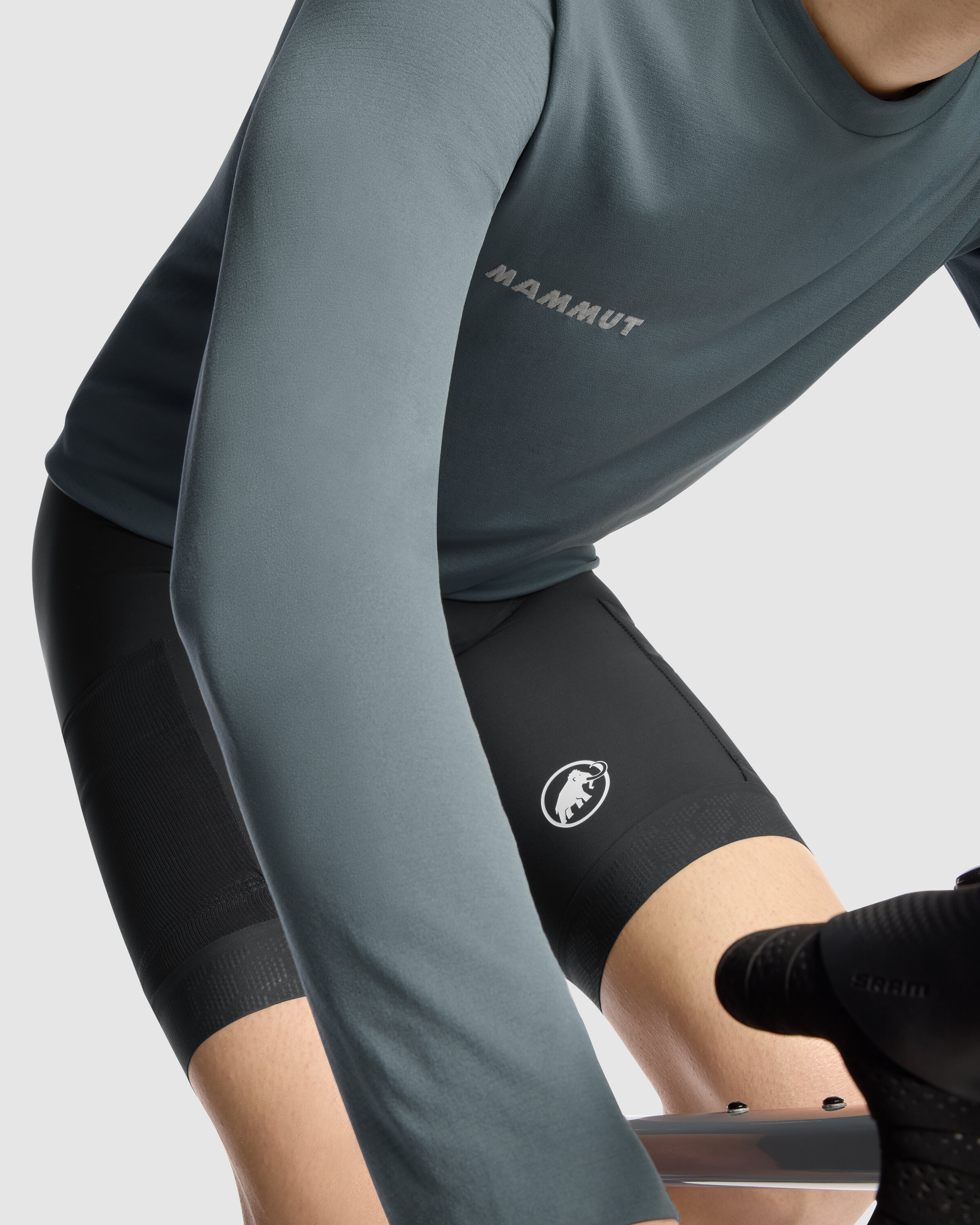 The ASSOS x Mammut TACTICA Long-Sleeve Tech Tee, an off-road layer that combines lightweight breathability, durable utility, and full-length sleeves with UPF 50+ for daily riding.