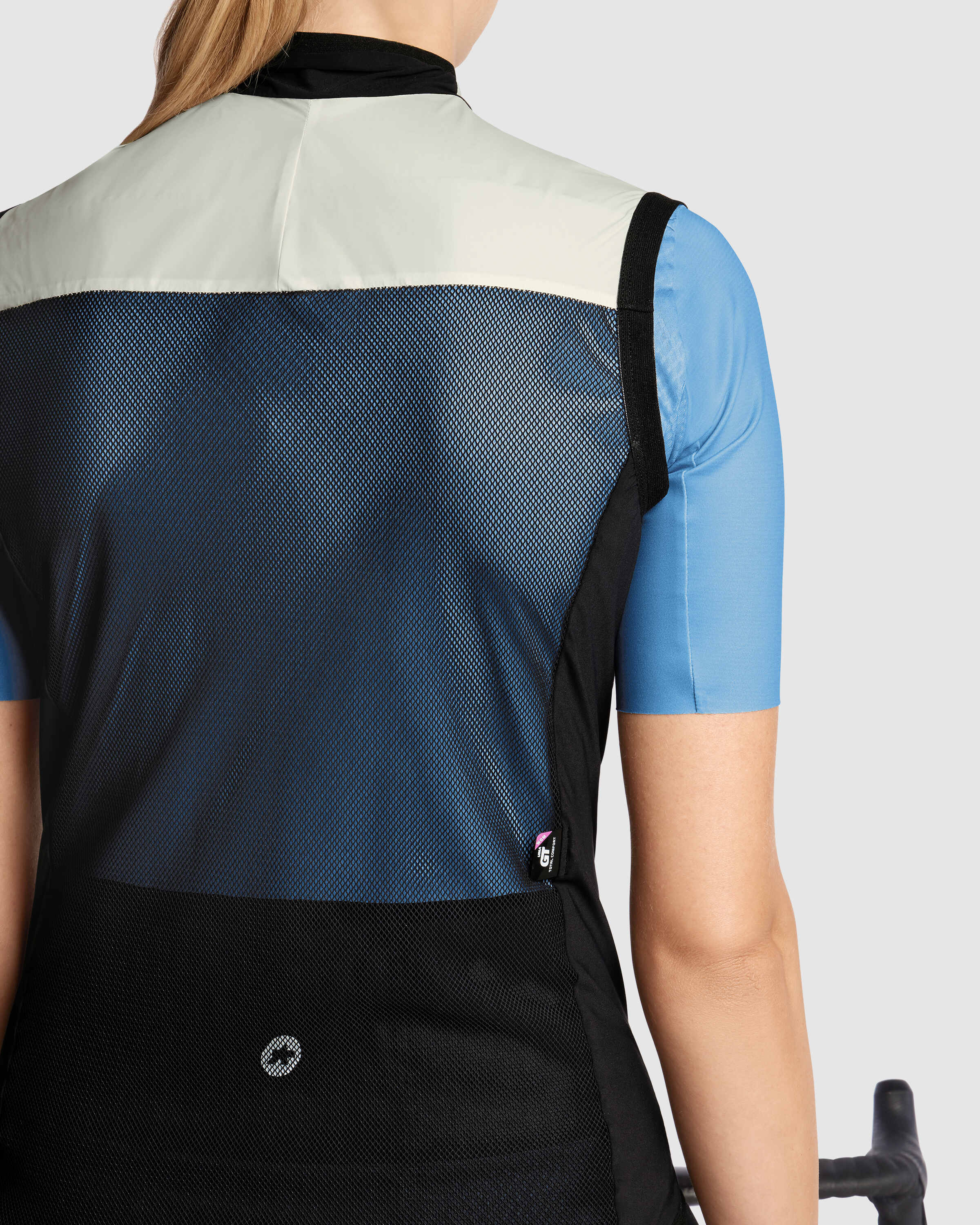 We improved our endurance gilet’s fit with a less rigid wind-blocking front panel, a mesh rear panel, and highly elastic side panel inserts, allowing the vest to wrap the body’s contours for a rustle-free fit while also increasing breathability. Updated armhole elastic reduces restriction and ensures no overlap with the UMA GT Jersey C2 EVO’s seams, increasing comfort and freedom of movement while eliminating friction between layers. The ultralight, ultra-packable design stows in a pocket when not needed, and the new mesh back panel reduces weight to just 56g (size x-small).