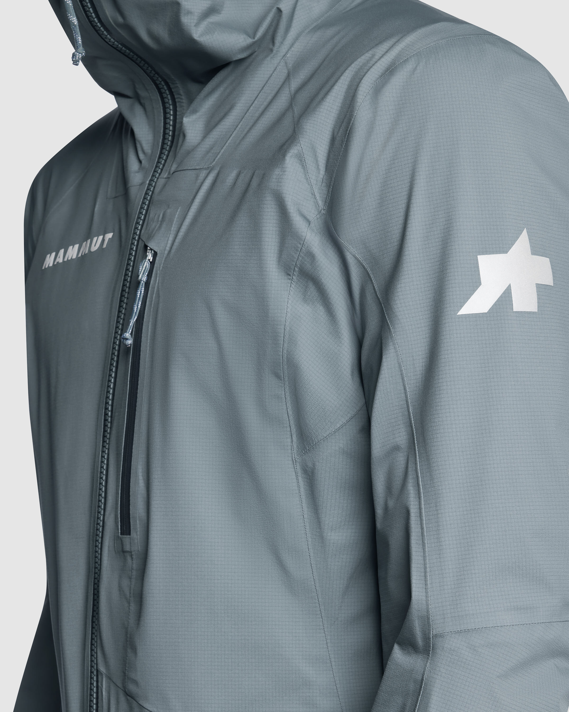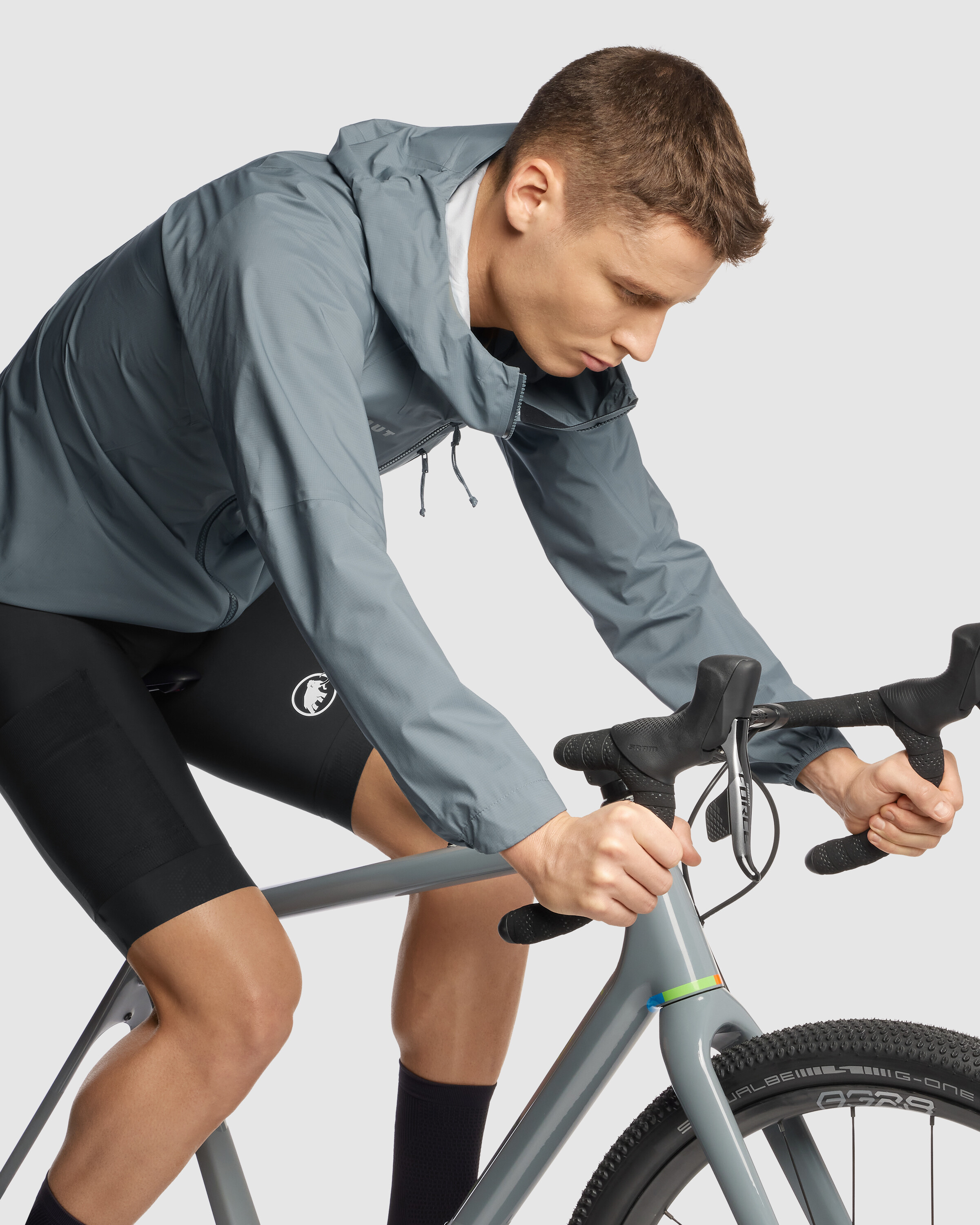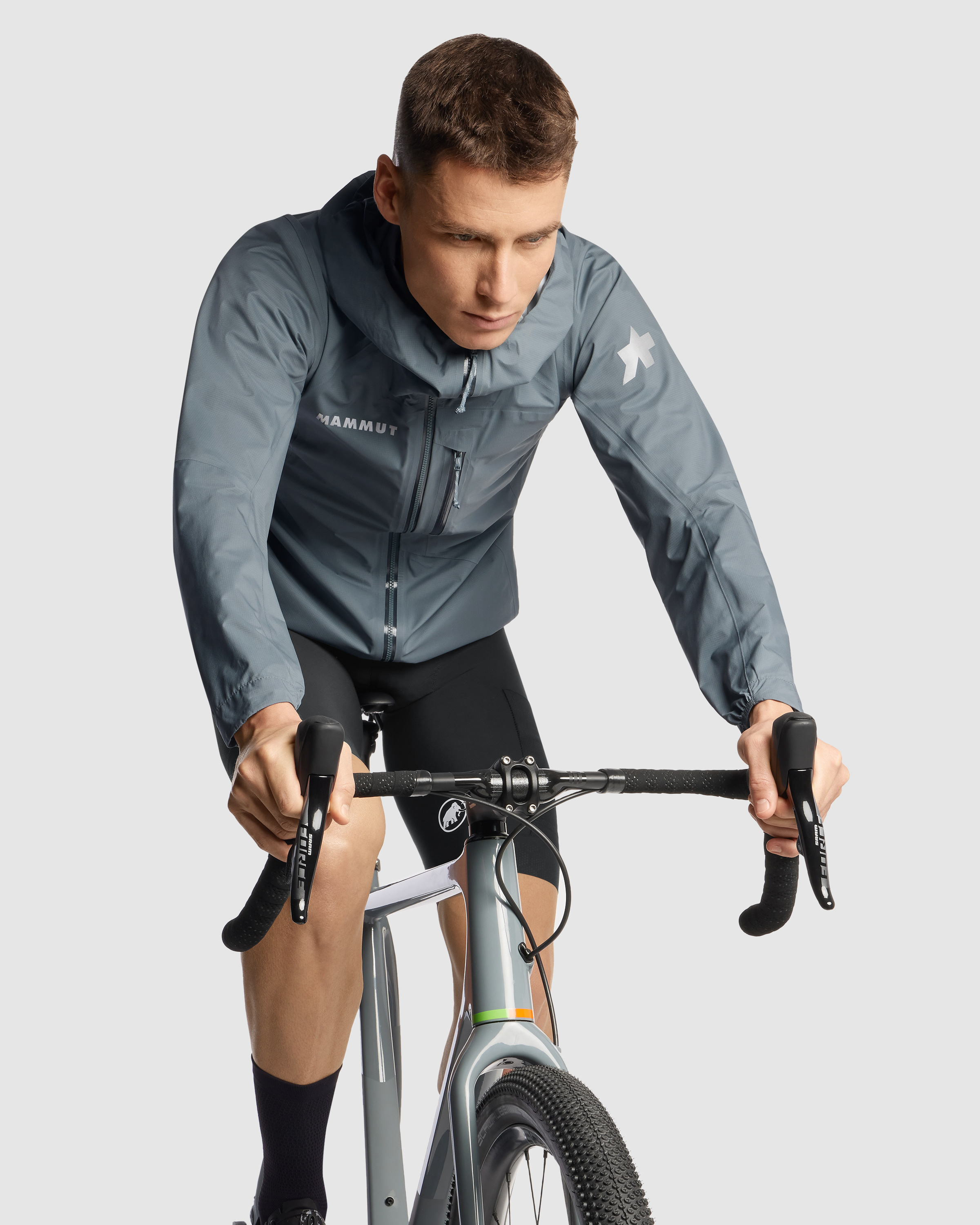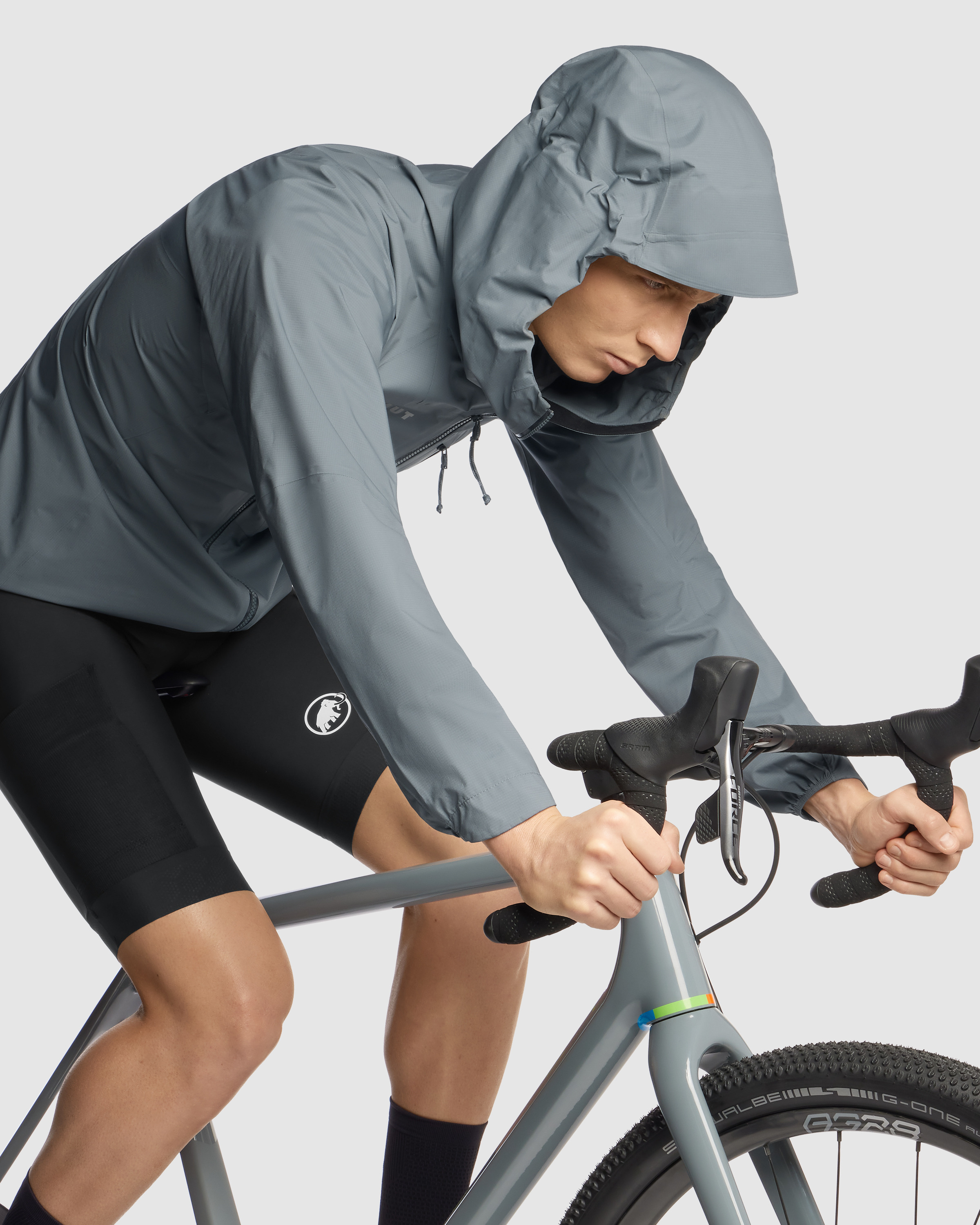 The ASSOS x Mammut HS Hooded Jacket is one of the lightest, packable 3-layer hardshells, perfectly suited for the most challenging bikepacking weather conditions.